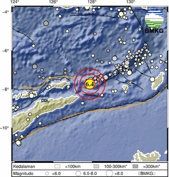 “Getaran dirasakan hampir semua penduduk, orang banyak terbangun,” tulis BMKG dalam keterangannya, menggambarkan dampak gempa dengan intensitas IV–V MMI di Tiakur.