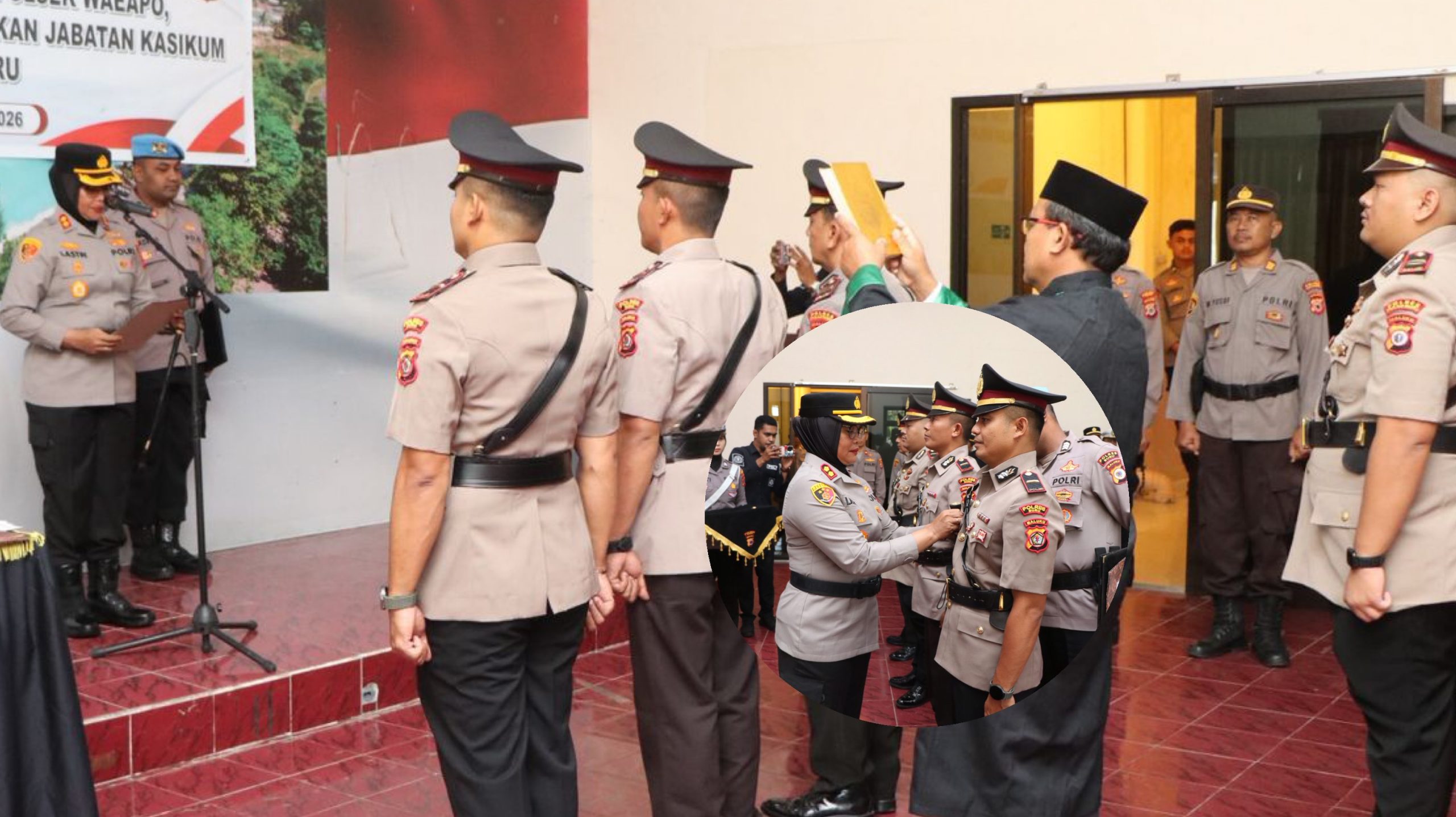 Dalam prosesi tersebut, dilakukan pembacaan keputusan Kapolda Maluku, penyematan tanda jabatan, pengambilan sumpah jabatan, hingga penandatanganan berita acara dan pakta integritas.