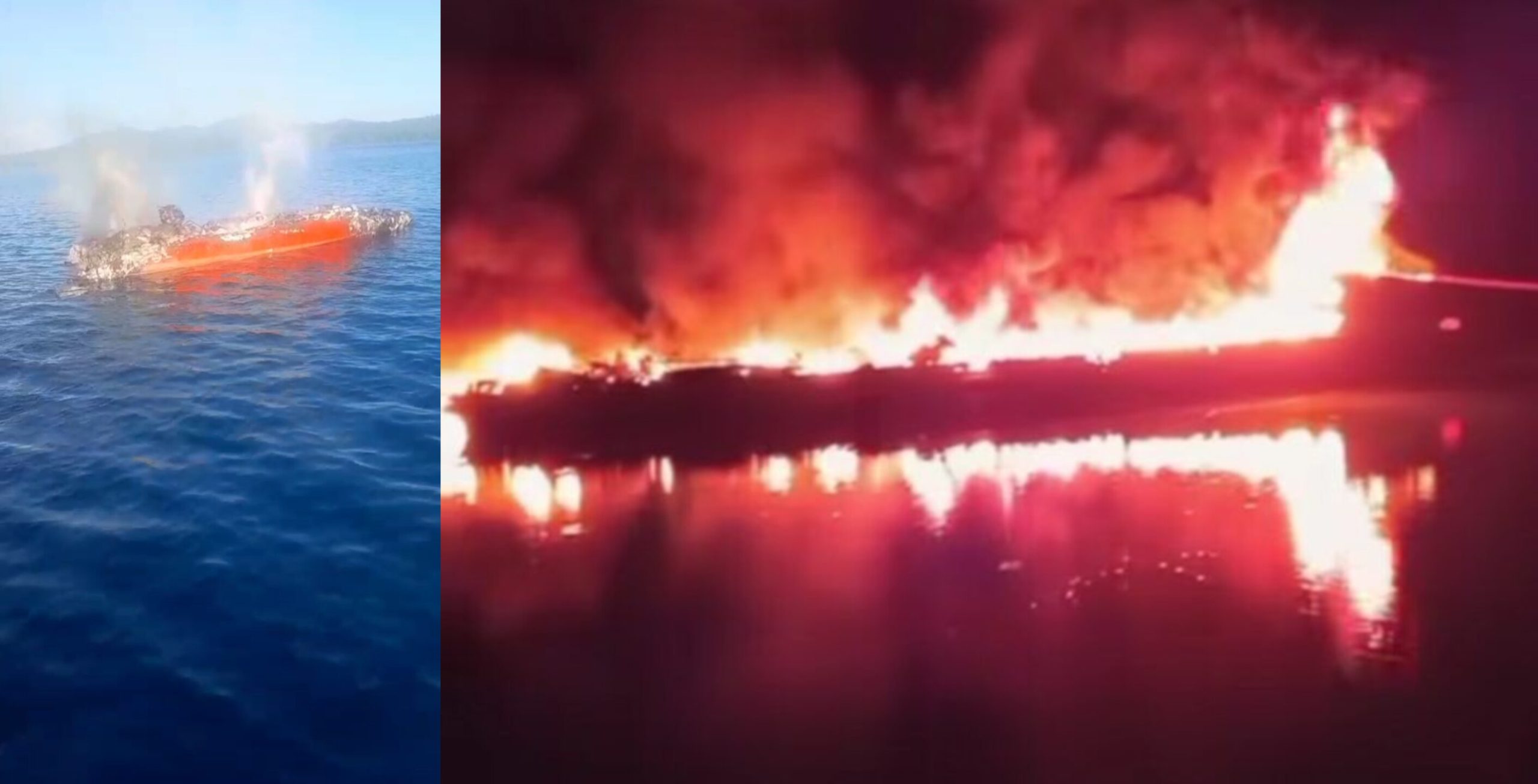 Api menghanguskan seluruh badan kapal KM Expres Bahari 9B.