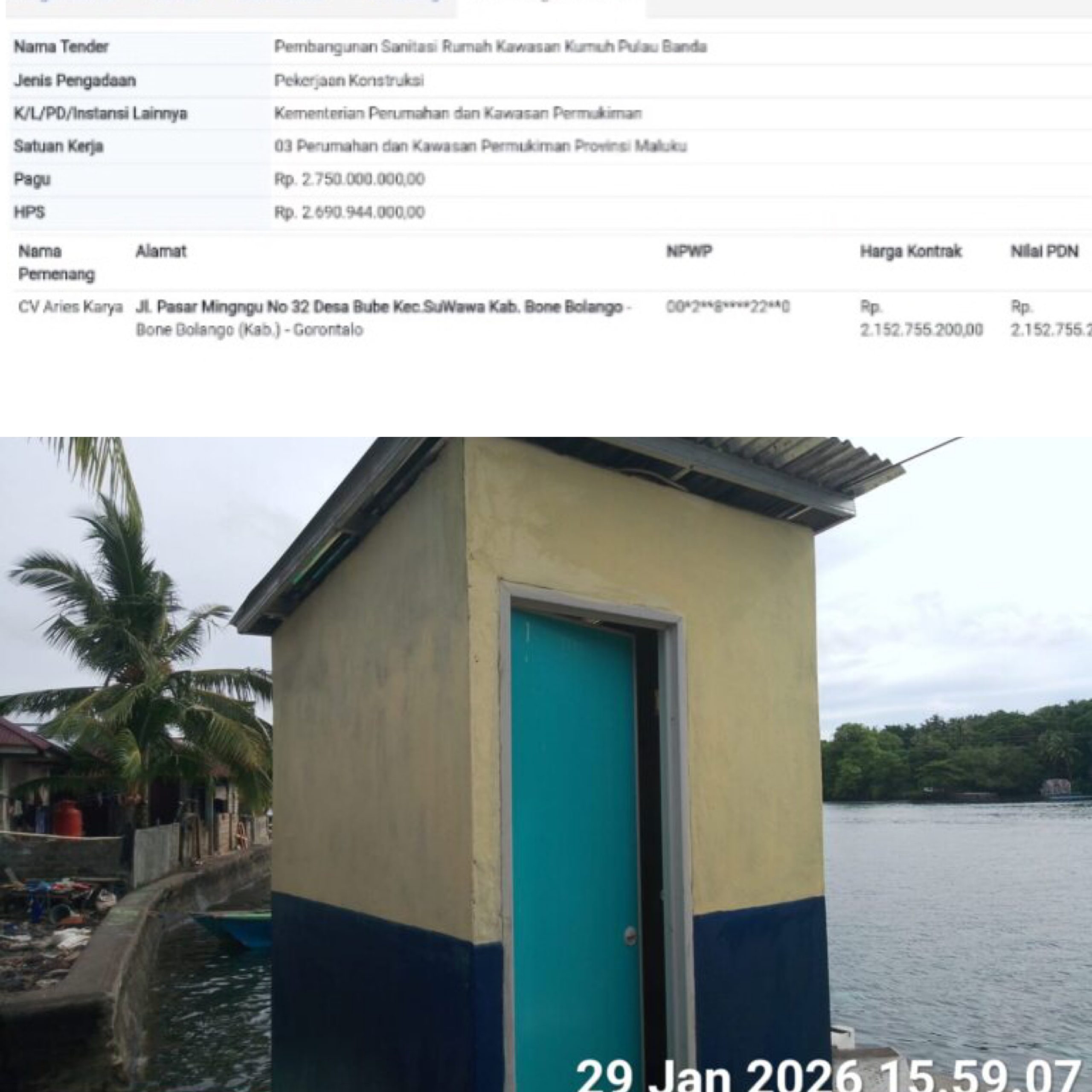Pihak CV. Aries Karya dan Pejabat Pembuat Komitmen di Balai Perumahan dan Kawasan Permukiman Maluku belum memberikan keterangan terkait masalah ini.