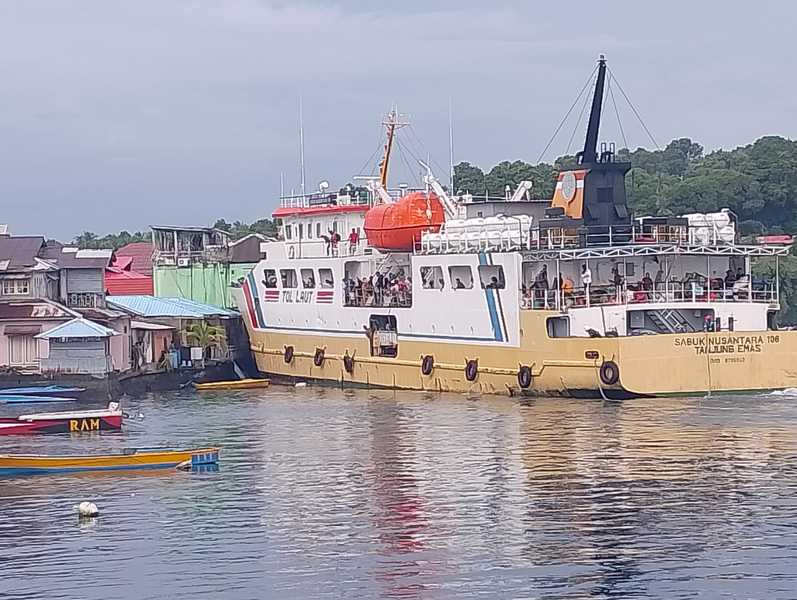 Kapal tol laut KM Sabuk Nusantara 106, yang seharusnya sandar di Dermaga Banda Naira, justru gagal bermanufer hingga menghantam rumah dan penginapan warga setelah mengalami gangguan mesin.
